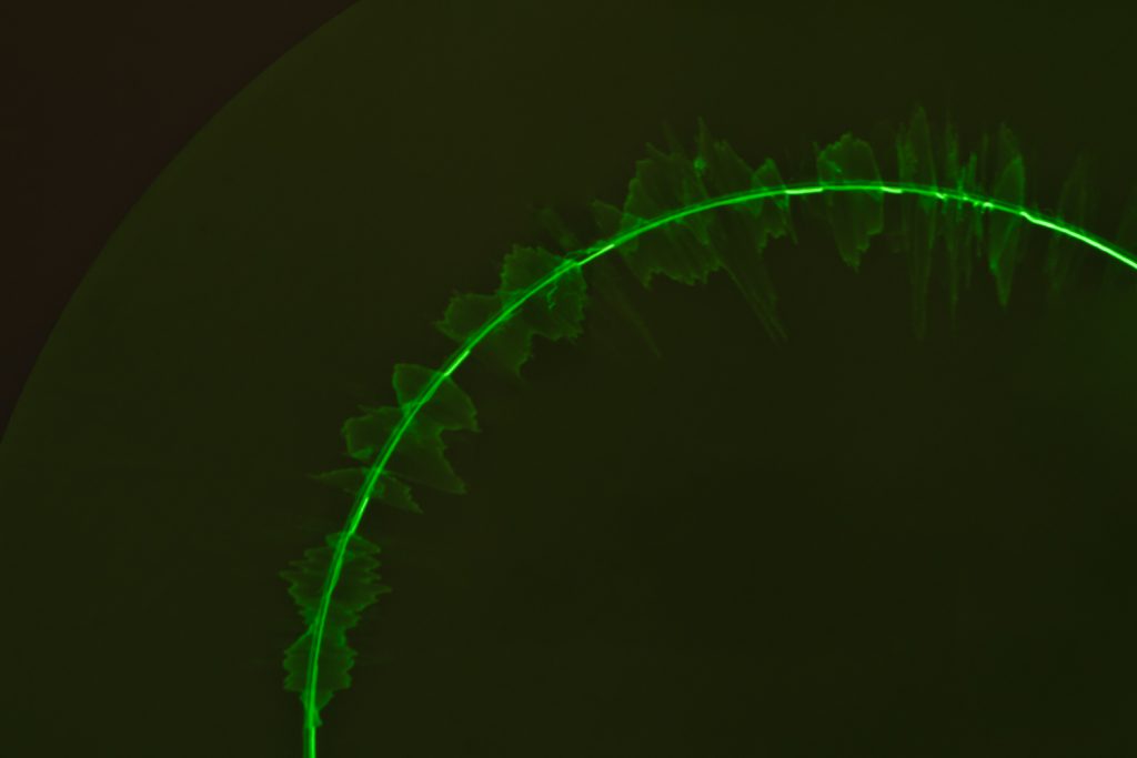 Overal in de natuur is verborgen informatie te vinden. Dit motiveert mij tot het exploreren van de natuur vanuit een ander perspectief. Het proces leert mij dat in alles data zit, dat kan worden omgezet tot andere vormen van informatie of worden opgeslagen. Als we praten brengen we brengen moleculen in vibratie. Deze moleculen kunnen worden omgezet tot elektrische signalen, die weer in een (andere) vibratie kunnen worden weergegeven. In de tentoonstelling wordt jouw eigen geluid zichtbaar gemaakt in een golfvorm, getekend door een laserstraal op een oppervlak dat licht kan opslaan.