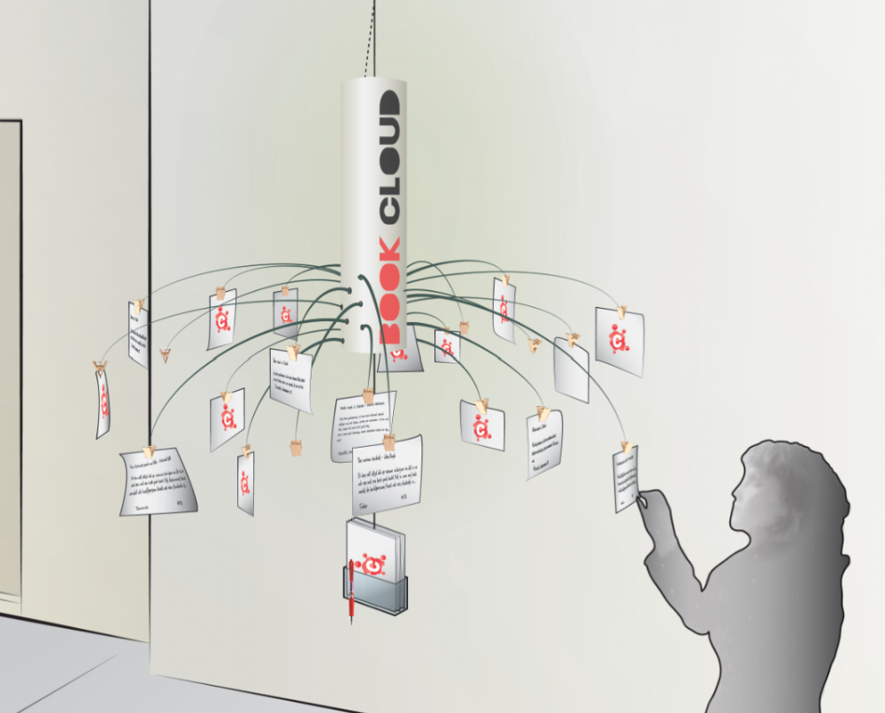 De BookCloud is bedacht om de sociale cohesie tussen mensen te versterken. Bezoekers kunnen briefjes ophangen waarop ze vertellen over een leuk boek dat ze gelezen hebben en aan andere bezoekers aanraden. Zo kunnen bezoekers leeservaringen met elkaar delen en elkaar inspireren! Mensen die normaal gesproken weinig met elkaar in contact komen, kunnen bij elkaar langsgaan om elkaars boeken te lenen. En elkaar beter te leren kennen.