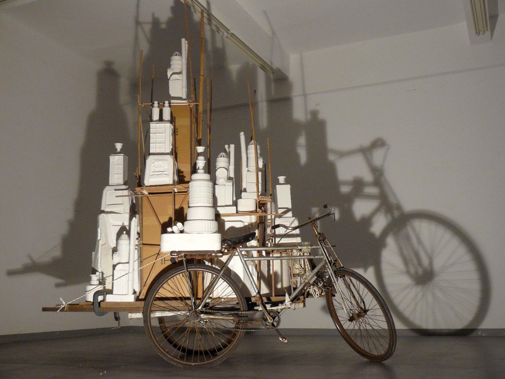 Ze maakte een installatie, waarin een fiets met zijspan 15 gebouwen in balans houdt. De gebouwen zijn gemaakt van porselein, ondersteund door bamboe-constructies. In de vormen van de gebouwen zijn allerlei voorwerpen uit het dagelijks (Chinese) leven herkenbaar, van serviesgoed en krukjes naar leidingkoppelstukken van pvc. In dit werk speelt ze met contrasten als snelheid - vertraging, toekomst - traditie, hightech - lowtech. Alle stappen van het keramisch proces zijn zichtbaar in het uiteindelijke werk, wat ons iets vertelt over de aanhoudende bouwdrift; de verschillende stadia van het bouwen zijn altijd en overal om ons heen zichtbaar. De porseleinen gebouwen tonen gietkanalen en mallijnen, losse onderdelen liggen op de bagage drager. Een bijzondere rol spelen de mallen waar de gebouwen in gegoten zijn. Binnenstebuiten gekeerd en op de kop vormen deze niet alleen bouwstenen in de installatie, ze zijn ook de negatieve vorm van het positieve afgietsel. Dus zelfs daarin is de 'balans' zichtbaar en voelbaar.