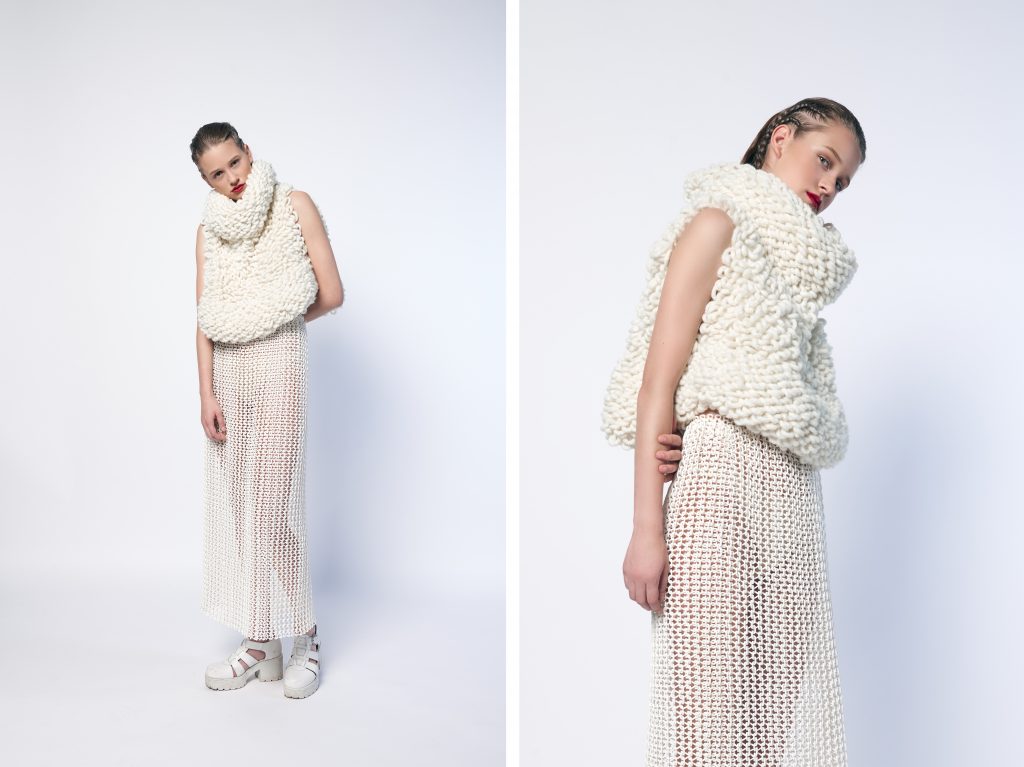 To wear or not to wear draait om de draagbaarheid van de 3D printer. Yvonne heeft basic kledingstukken ontworpen die ofwel gebreid zijn of 3D geprint met een brei structuur. Omdat er zoveel verschillende manieren zijn van breien, zijn er een aantal mogelijkheden gepresenteerd met een simpele 3D printer. Yvonne Swiers is een mode ontwerpster die graag experimenteert met materialen en technologie, wat niet altijd resulteert in draagbare ontwerpen. Dit is iets dat ze graag onderzoekt, de grens tussen draagbaar en niet-draagbare mode. Door handwerken, zoals breien, te combineren met technologie, zoals 3D printen, wil ze nieuwe ontwerpen en mogelijkheden creëren die kunnen leiden tot nieuwe technieken.