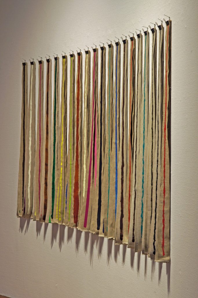 100 verfstreken – op voorraad: acryl op linnen stroken, 220 x 110 cm, 1014/2015