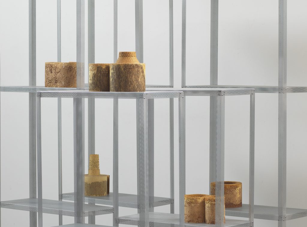Point-type: geperforeerd papier, was en geperforeerde aluminium stellingkasten, 2015, foto: Dominique de Beir