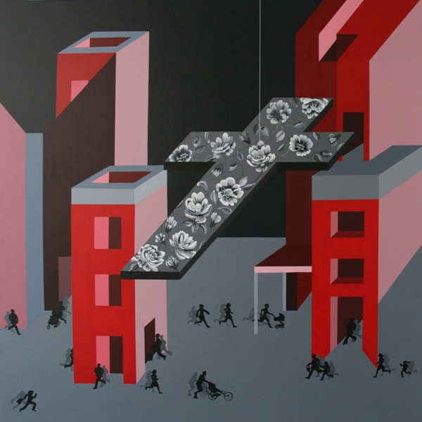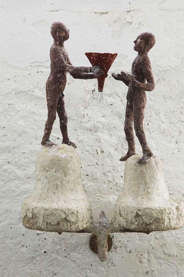 Het gebruik van de kruisvorm staat in haar werk niet speciaal symbool voor religie maar meer als verbinding en het continu aanwezig zijn van’ het goede’. Ook daar waar de mensen in de hectiek van het dagelijks bestaan elkaar en zichzelf voorbij lopen , zich soms als honden gedragen en elkaar achterna lopen zonder voor hun eigen mening uit te durven komen.”