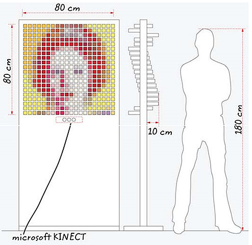 Funded by the Research Initiatives call, the kinetic mirror is a novel interactive 3D display. It is based on a simple linear actuator (a motor fader), and developed with a large-scale array of 400 moving pixels. The end result is a mirror that mimics and plays with the audience or object held in front of it, in dynamic shape changes and vivid colours. Students of the minor on advanced prototyping assembled this prototype.