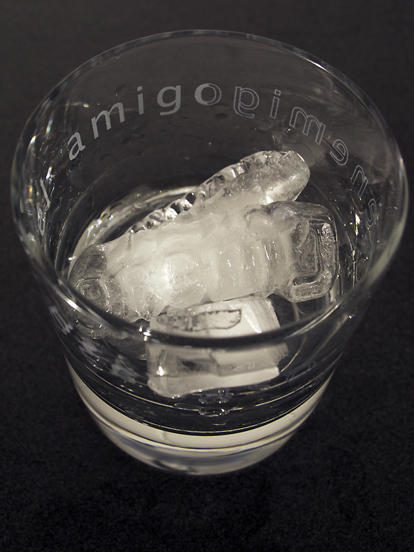 Inti Hernandez’s werk belichaamt een meewerkend aspect: door middel van zijn kunst en interactie met degenen die zich met zijn werk bezighouden, hoopt Hernandez betekenissen te verkennen en te leiden tot reflectie. Encounter (ice trays) [vertaling: Ontmoeting (ijsblokjes vormen)] is een variatie op het ‘friend’ en ‘enemy’ drinkglazen concept*. IJsblokjesvormen worden gebruikt om ijsblokjes te maken in de vorm van het woord vriend/friend/amigo en het woord vijand/enemy/enemigo. Samen in hetzelfde glas laten ze hun tegenstellingen los en gaan ze smeltend in elkaar op. Twee vormen met tegengestelde betekenissen worden één door hun gezamenlijke doel: ‘het koelen van onze drankjes’.