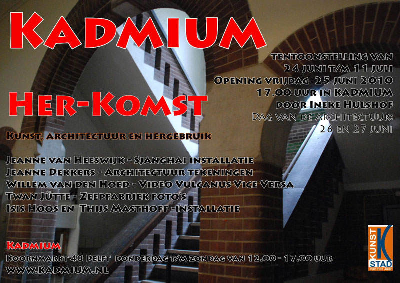Overzichtstentoonstelling deelnemers 18e atelierroute Atelierroute 12 en 13 oktober opening zaterdag 12 oktober 11.00 uur in Kadmium Voor meer informatie kijk op: www.delftseatelierroute.nl Deelnemers Rielle Beekmans, Anja Bijl, Brech, Brighart, Fotografen Collectief, Coen Dekkers, Dirk van Dien, Pieta Dijkstra, Simon Dirkse, Liset van Dommelen, Roos Duyvestijn, Sascha van Eijk, Rob van Es, Aleksandra Gaca, Tineke van Gils, Trudie van Ginkel, Kiek Haket, Rik van Hazendonk, Fred Hemmes, Hilda Hendriksen, Evaria Hoenderop, Delfts Hout, Studio Iets, Jeannette Infante […]