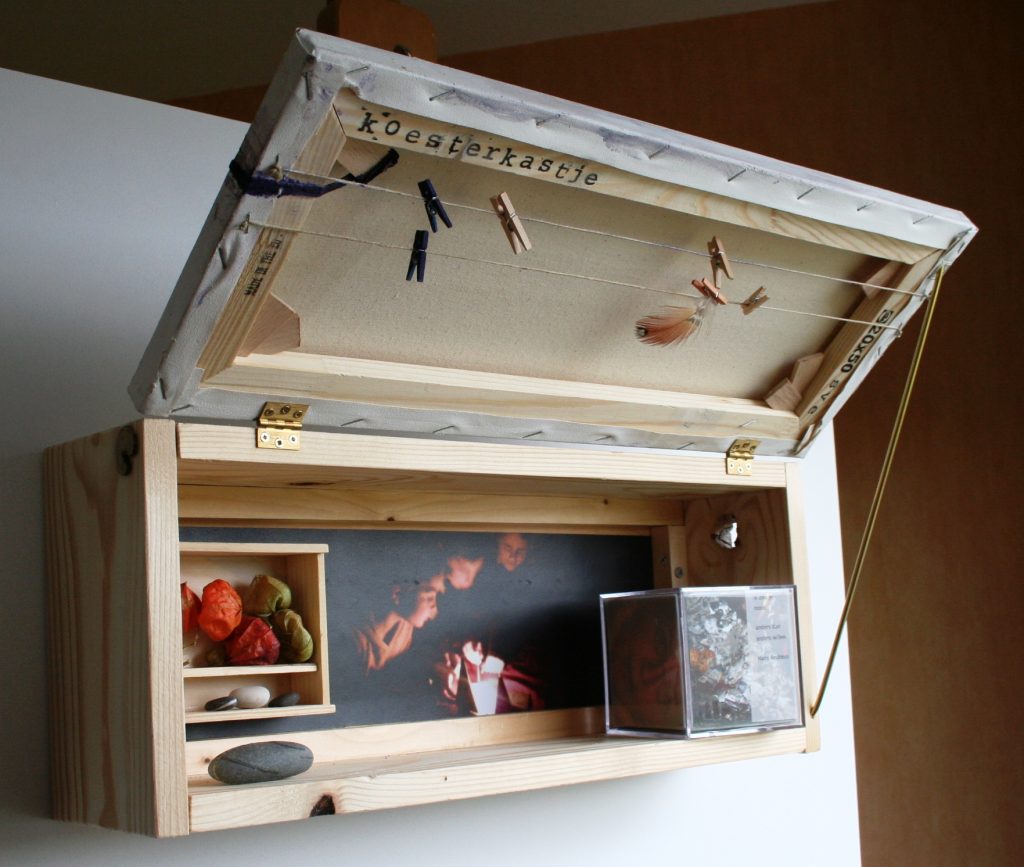 Materialen en vormen die persoonlijke waarde hebben, verwerk ik in ruimtelijke objecten. Levensverhalen geven mijn werk vorm en betekenis. Met deze ‘KoesterKunst’ maak ik het vergankelijke tastbaar en geef ik een kijkje in de ziel.