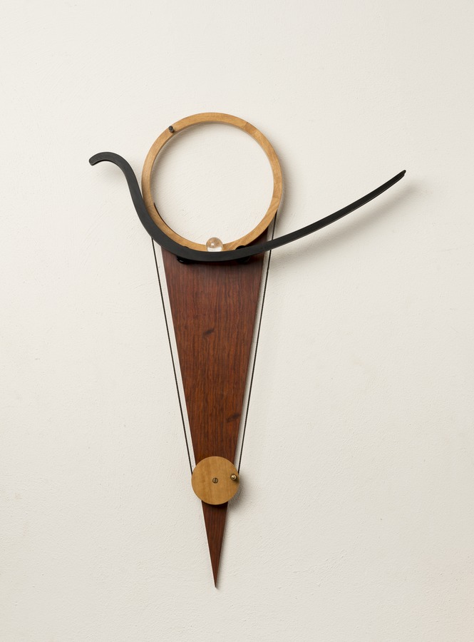 Mark Bischof blinkt uit in ambachtelijke technieken. Sinds zijn studie op de cello schept hij vernuftige ‘instrumenten’ die de verbeelding op ongewone wijze prikkelen. Een daarvan werd gekopieerd voor een thriller met Anthony Hopkins. Voor een warenhuis in Zürich bouwde hij de grootste kogelkok ter wereld. In Kadmium exposeert hij een ensemble van kleinere objecten die hij ‘Kinetische Momenten’ noemt. De beweging van de strijkstok, de doem van herhaling, de wet van oorzaak en gevolg: Bischof heeft er frisse- en compacte vormen voor bedacht.